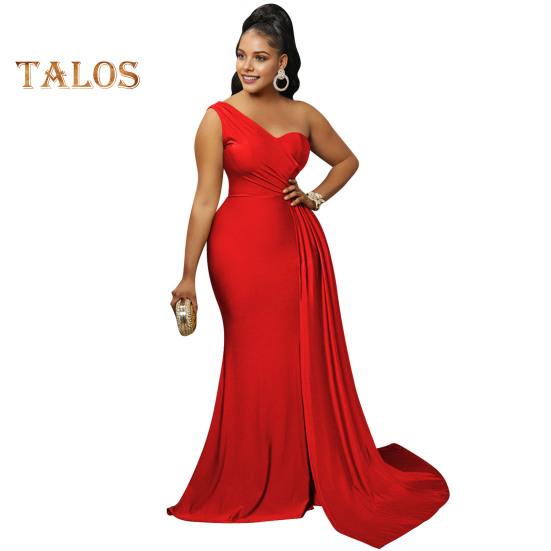 Женское вечернее платье на одно плечо без рукавов с разрезом по низу, однотонное плиссированное однотонное платье для выпускного вечера, коктейльное платье макси, бальное платье S красный