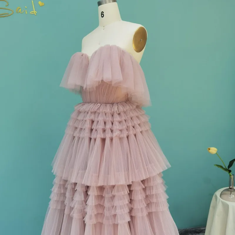 Женское вечернее платье с оборками в несколько рядов, розовое длинное платье с открытыми плечами для свадьбы и выпускного вечера, модель SS218...
