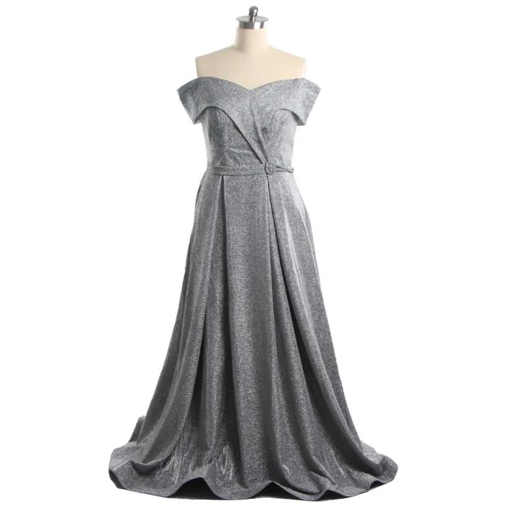 Женское вечернее платье с открытыми плечами, светло-серое Плиссированное ТРАПЕЦИЕВИДНОЕ платье в пол со стразами, модель B1122