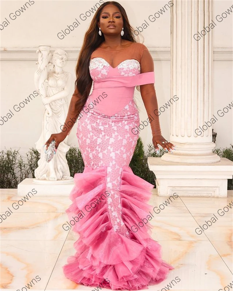 Женское вечернее платье с юбкой-годе, розовое Прозрачное платье с круглым вырезом и аппликацией для вечеринки на день рождения
