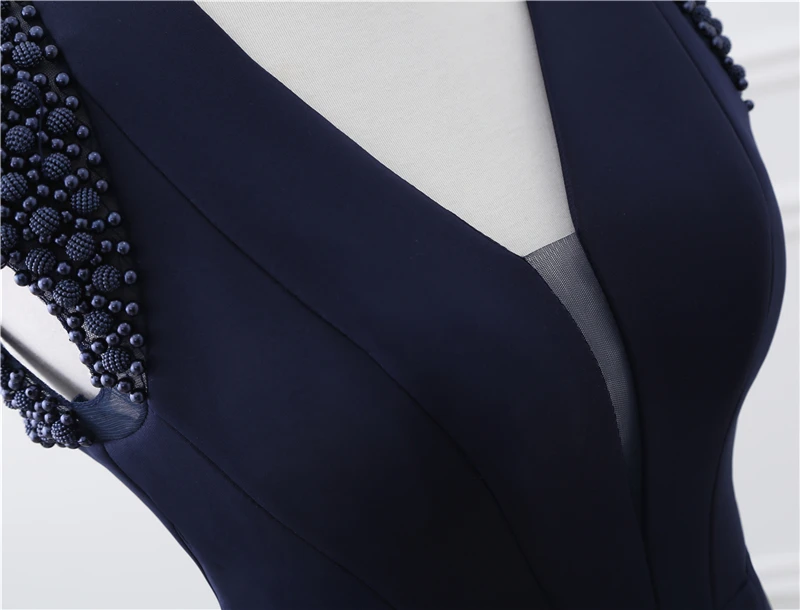 Женское вечернее платье с юбкой годе, темно-синее атласное платье с рукавами-крылышками и жемчугом, длинное платье с открытой спиной для вып...