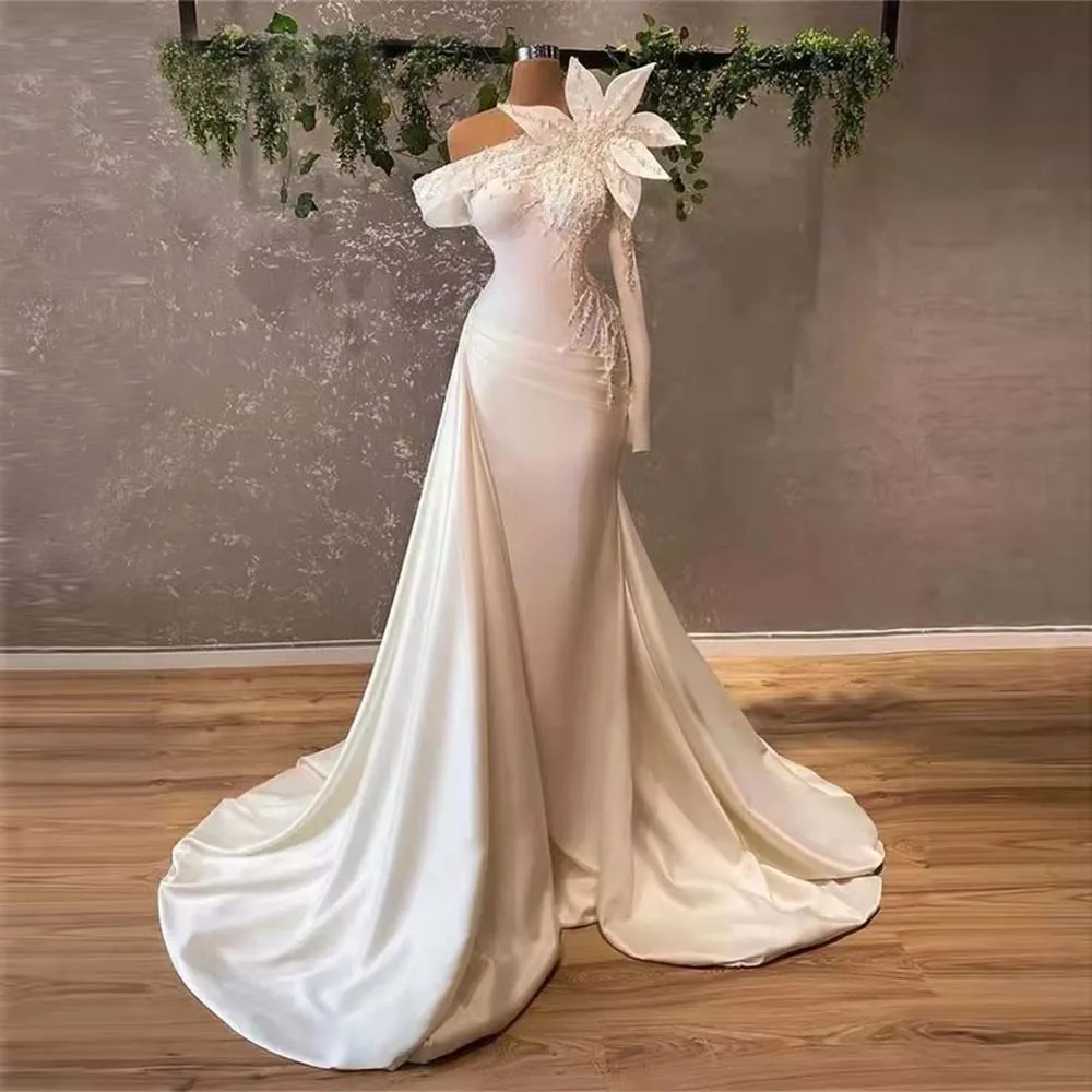 Женское вечернее платье с юбкой годе Whith, атласное платье ручного изготовления с цветочным узором, открытыми плечами, шнуровкой и шлейфом, п...