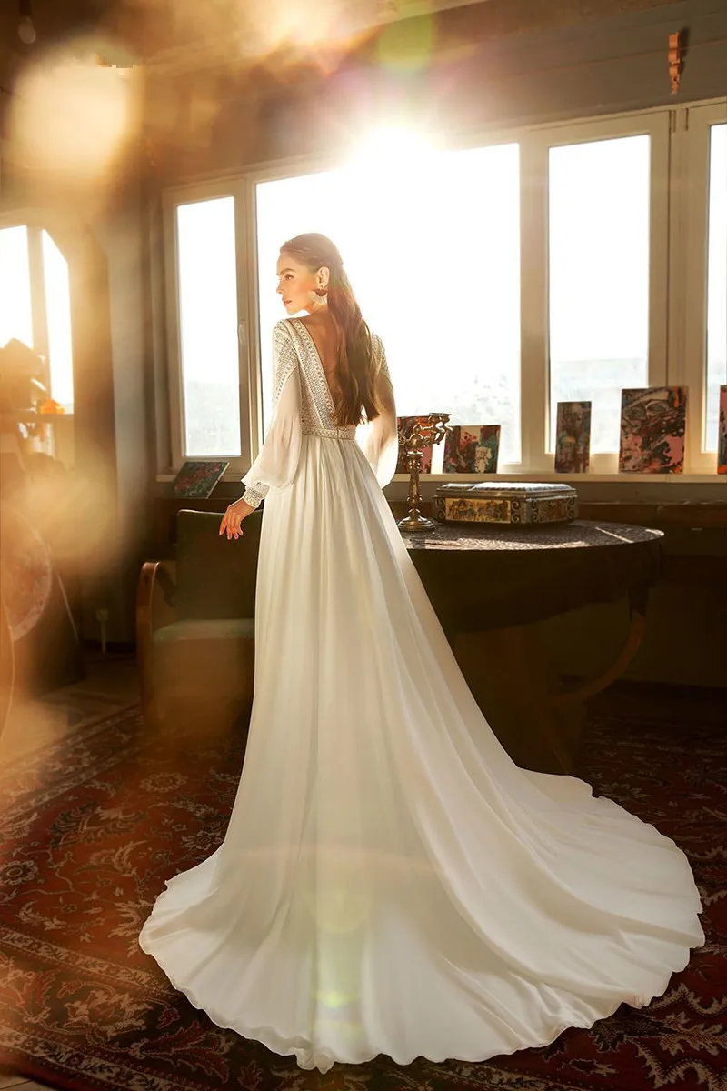 Женское вечернее платье It's yiiya, белое кружевное платье в богемном стиле с рукавами-фонариками, V-образным вырезом и открытой спиной Вечерние ...