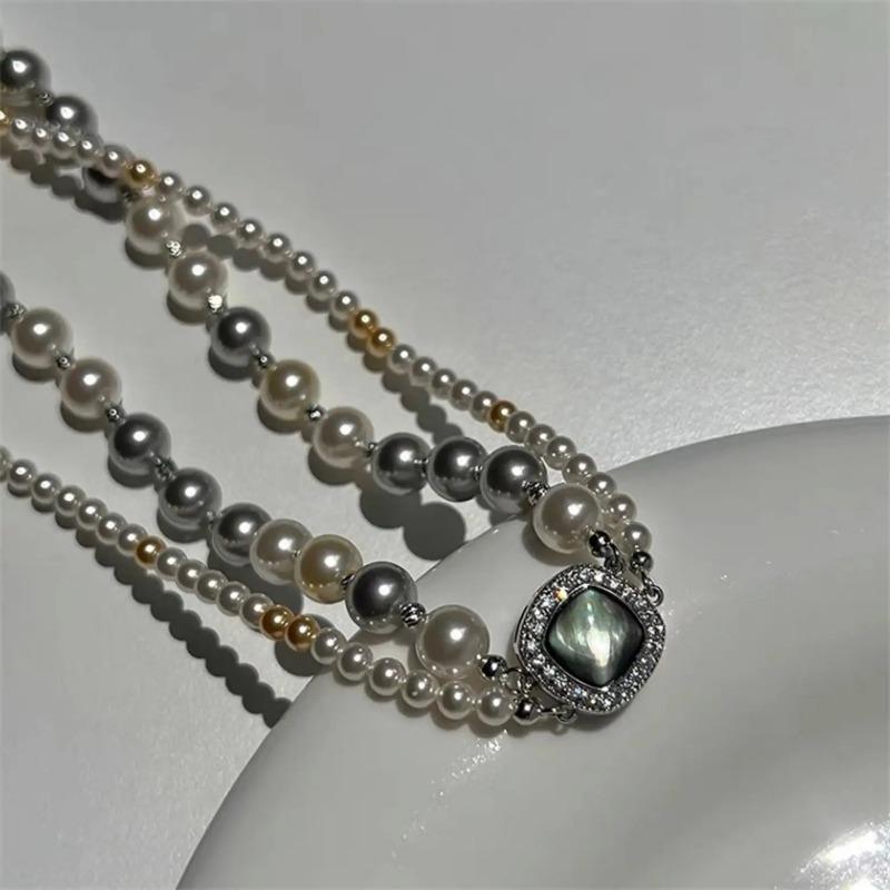 Женское винтажное двухслойное ожерелье EVACANDIS премиум-класса с жемчугом, красочная роскошная цепочка для свитера с кристаллами жемчуга и ракушками Черного моря