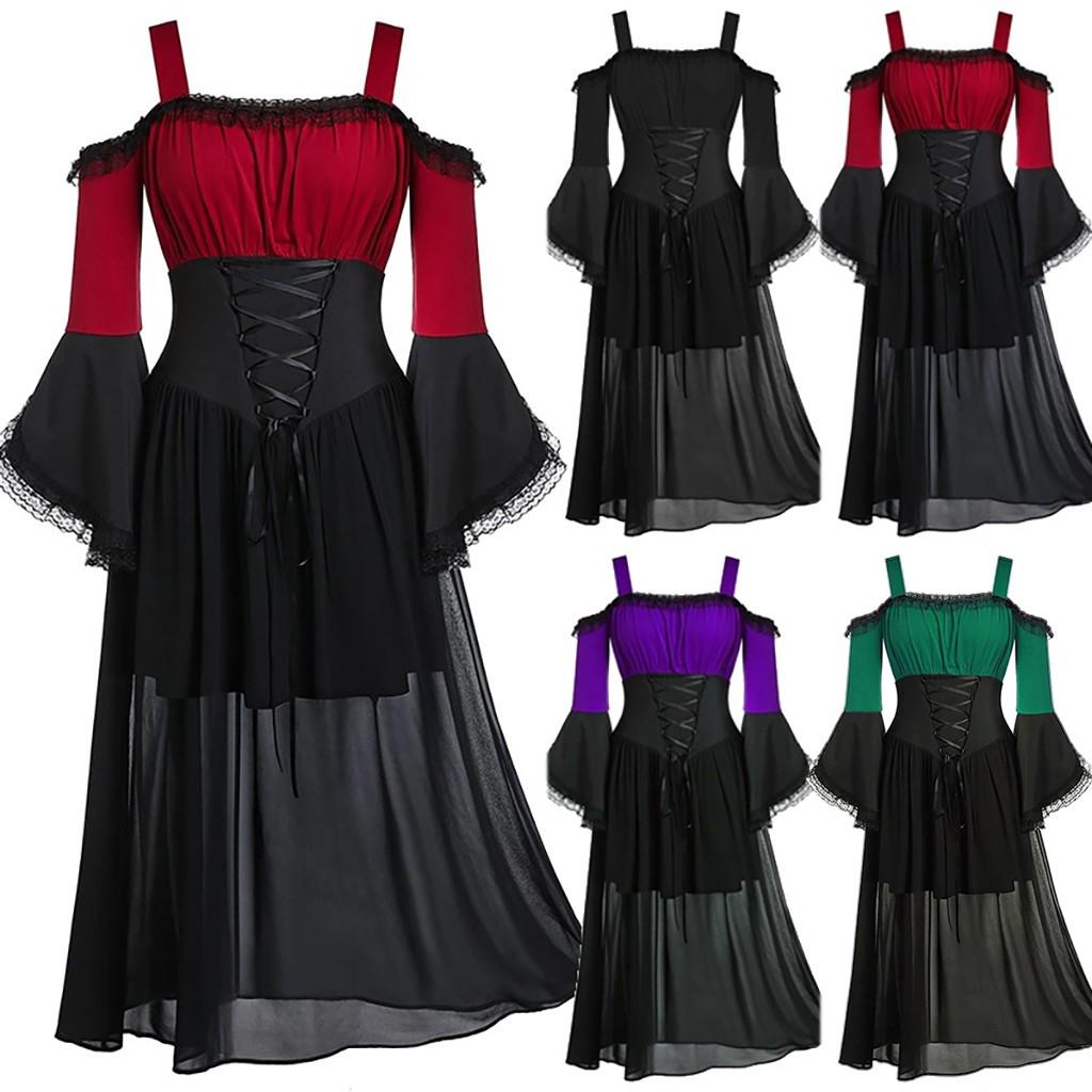 Женское винтажное длинное платье с длинными рукавами и открытыми плечами