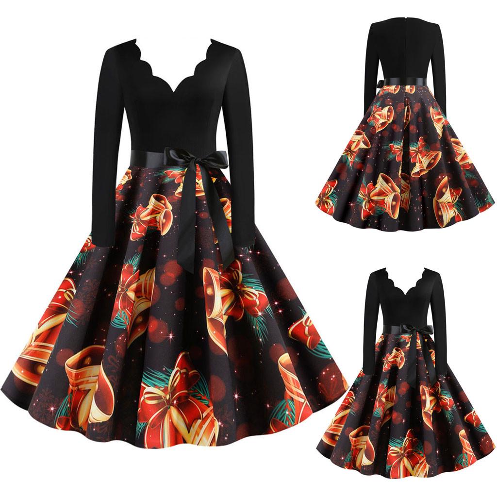 Женское винтажное платье для выпускного вечера с длинным рукавом в стиле Рождества 1950-х годов для домохозяйки