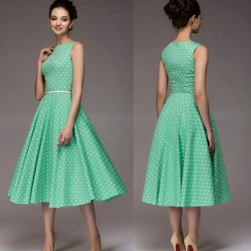 Женское винтажное платье-качели в горошек, черное платье средней длины без рукавов, с круглым вырезом, в стиле ретро, элегантная модель для б...