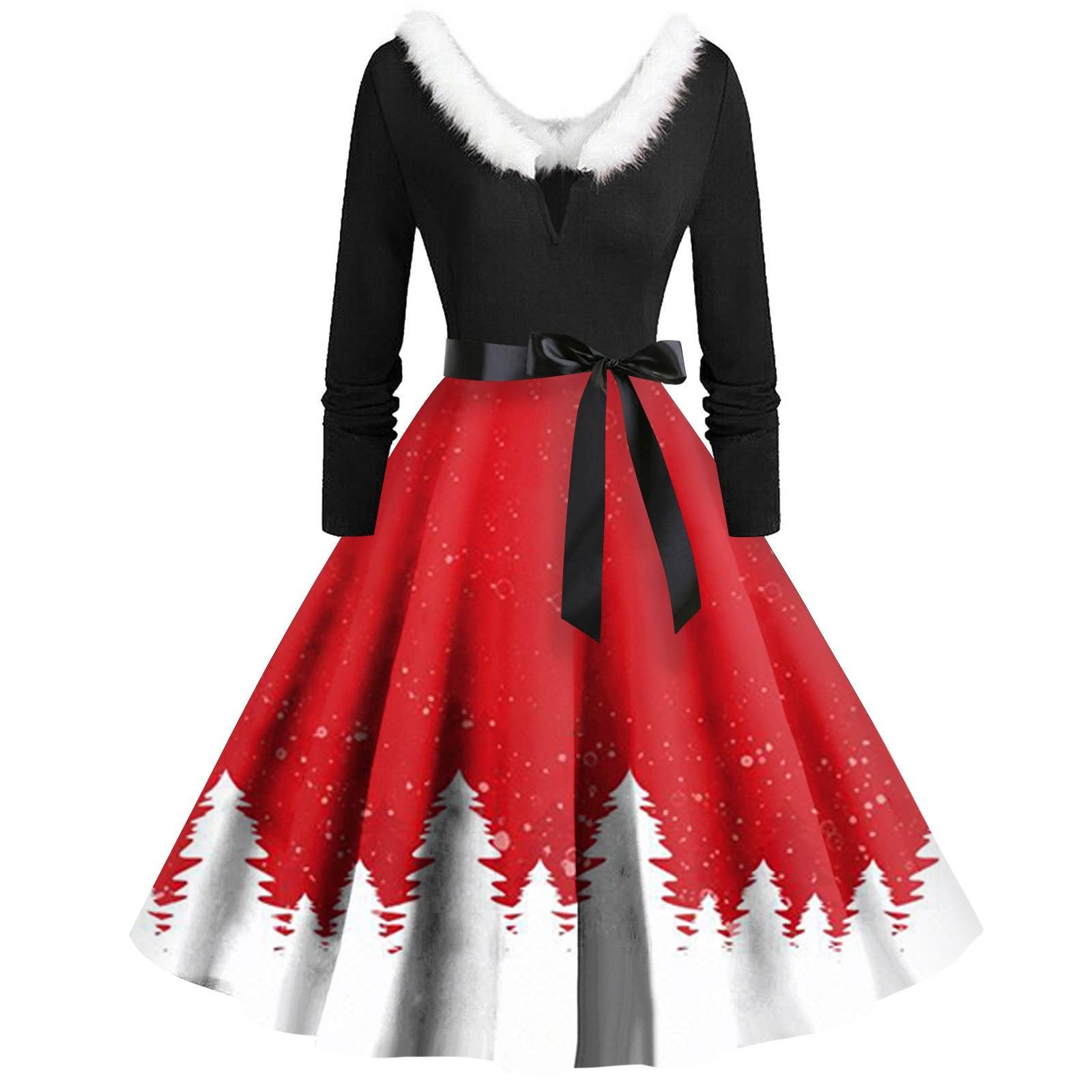 Женское винтажное платье с длинным рукавом и рождественским принтом в стиле 1950-х годов для вечеринки, выпускного вечера, для домохозяйки M киноварь