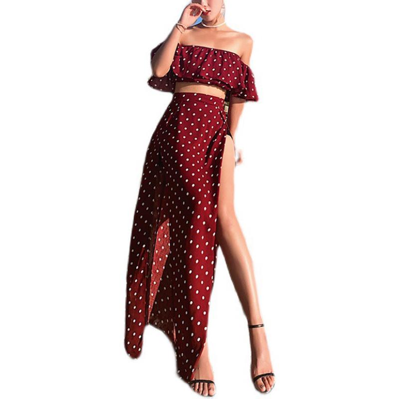 Женское винтажное платье с открытыми плечами в красную точку, длинное платье макси, плиссированное летнее пляжное платье из шифона L красный