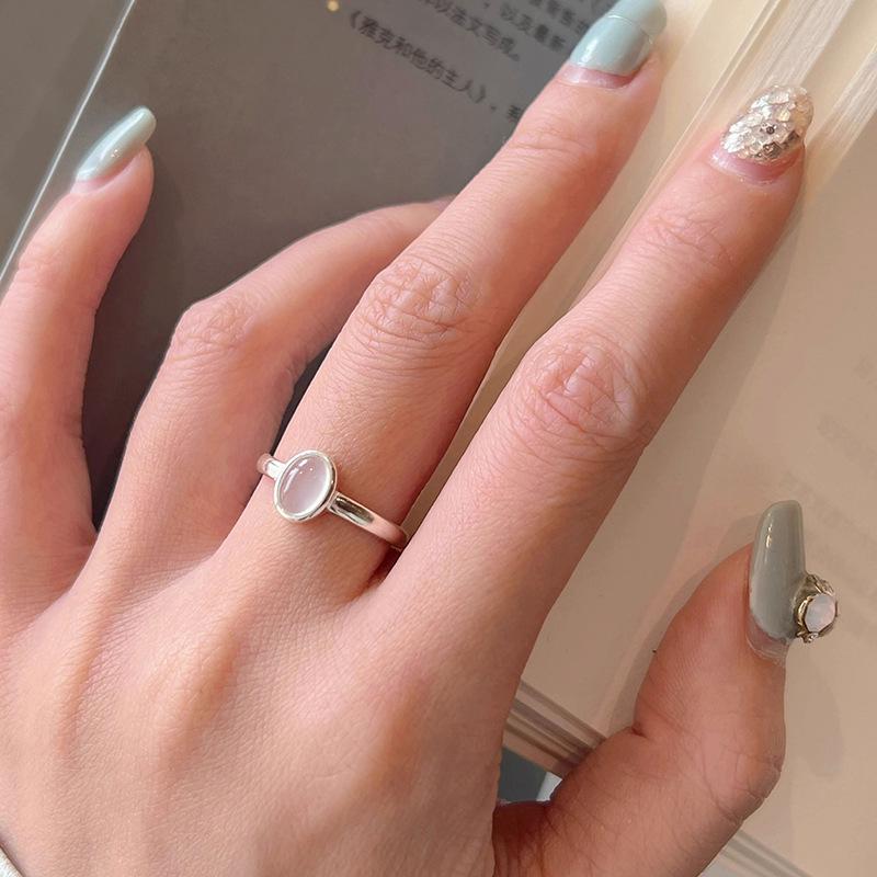 Женское геометричное минималистичное кольцо из стерлингового серебра с овальным белым халцедоном Adjustable