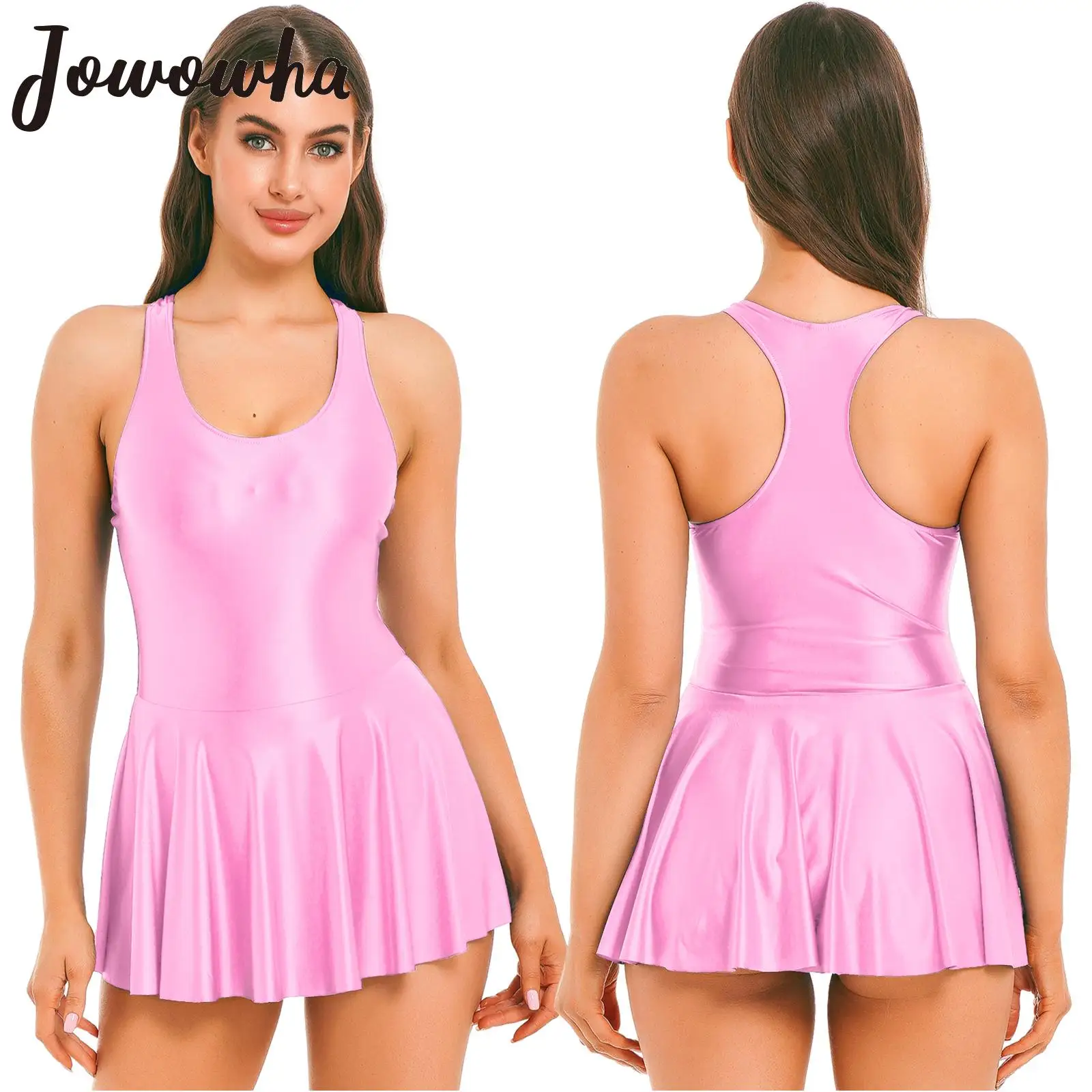 Женское глянцевое платье на бретелях, Цельный купальник без рукавов, балетное танцевальное трико, платья, спортивный костюм для йоги, одежда для клуба, купальник