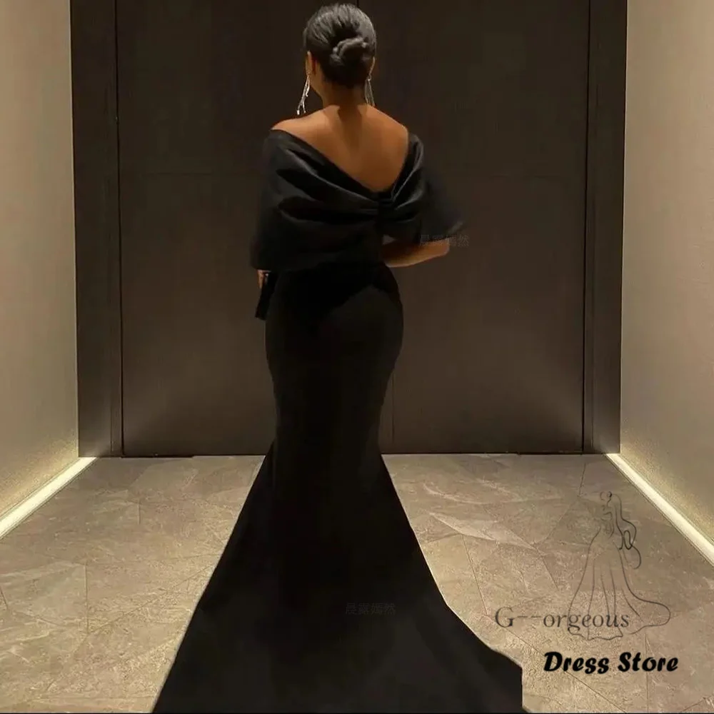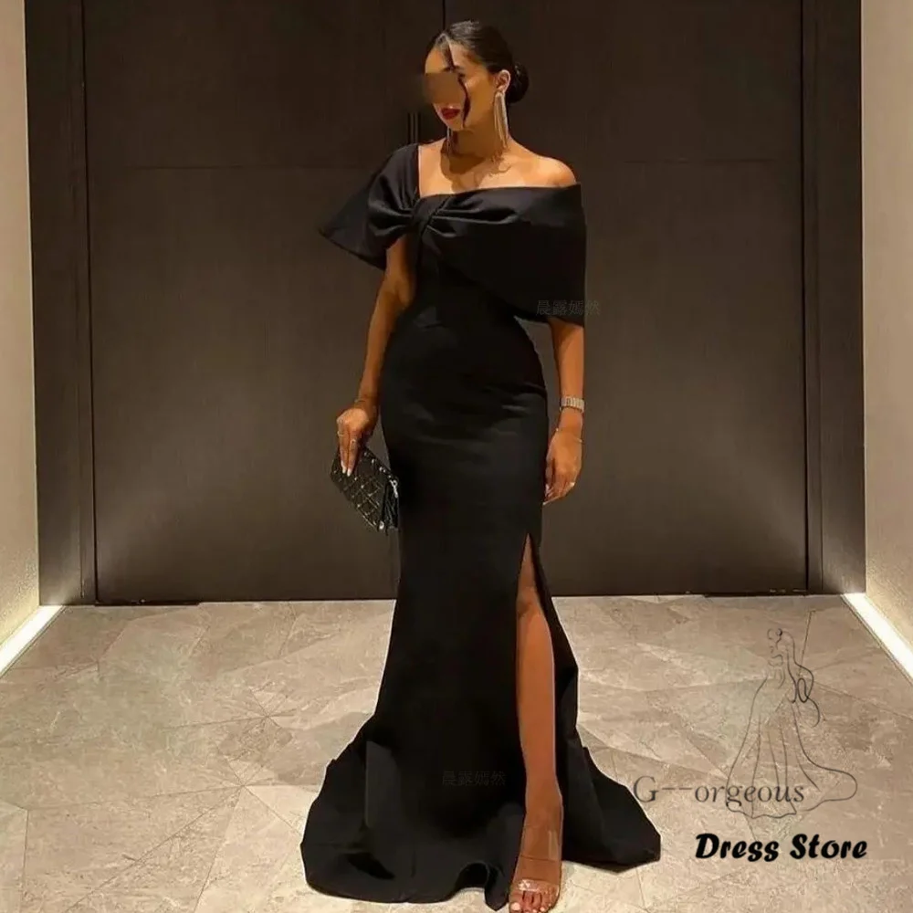 Женское длинное вечернее платье-русалка, черное атласное платье с открытыми плечами и разрезом, элегантное платье для выпускного вечера, 2023