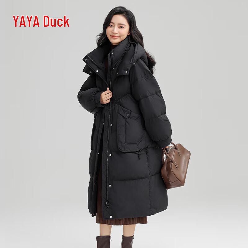 Женское длинное зимнее пальто с капюшоном на утином пуху M