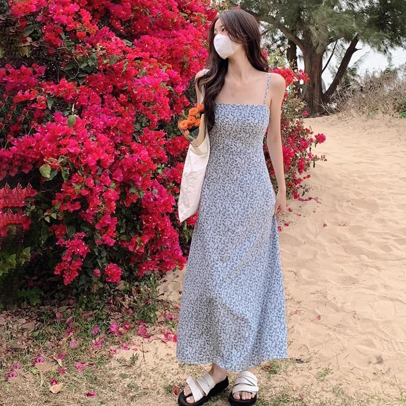 Женское длинное платье без рукавов с цветочным принтом в стиле «отпуск на море»
