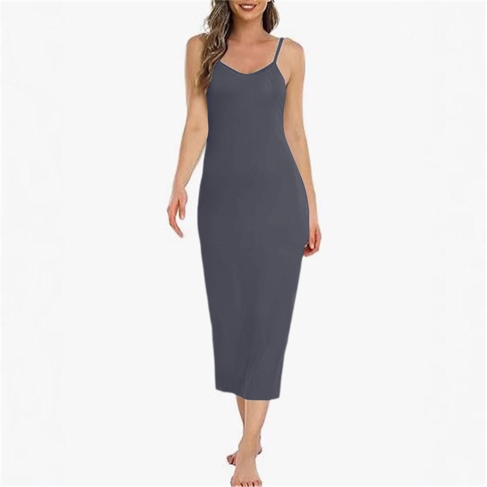 Женское длинное платье-комбинация, базовое регулируемое платье-комбинация на тонких бретельках, мягкая ночная рубашка с V-образным вырезом, нижнее платье XXL