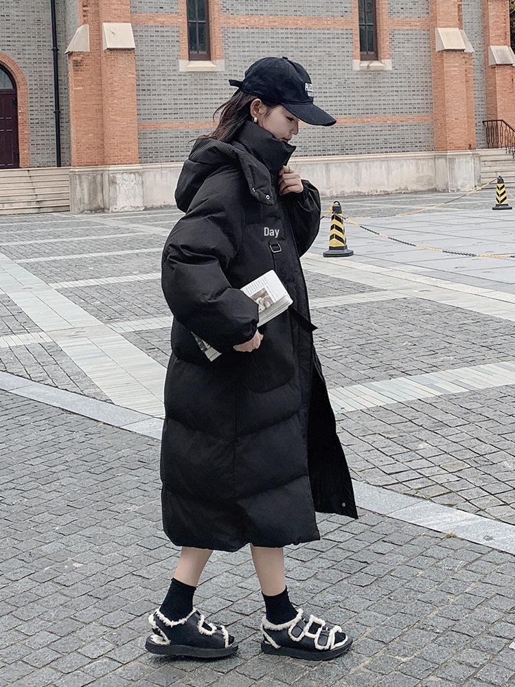 Женское длинное пуховое пальто в корейском стиле 2025 года: Зимняя куртка средней длины, утолщенная, выше колена L чёрный