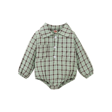Meihuida Baby Boy Romper Shirt Long Sleeve Button Down Plaid Print Bodysuit One-Piece Outfits