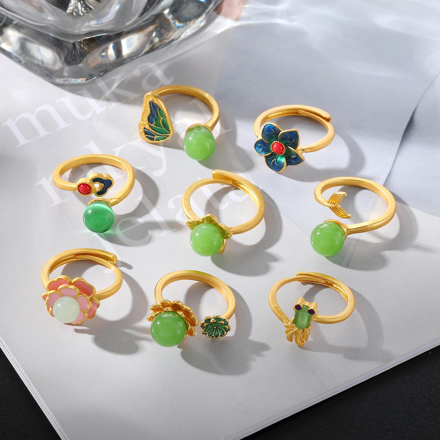 Женское зеленое нефритовое кольцо Пляжный праздничный стиль Размер Регулируемое кольцо Винтажный цветочный стиль Женский подарок