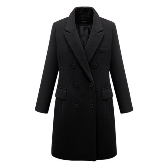 Женское зимнее пальто, двубортное, с отложным воротником, с длинными рукавами, верхняя одежда, толстые теплые карманы, однотонное, офисное, повседневное, для вечеринок M чёрный
