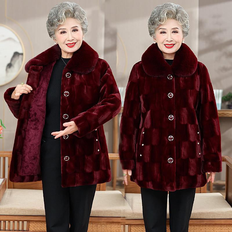 Женское зимнее пальто - плюс бархат, утолщенное, элегантный китайский стиль для людей среднего и пожилого возраста XL красный
