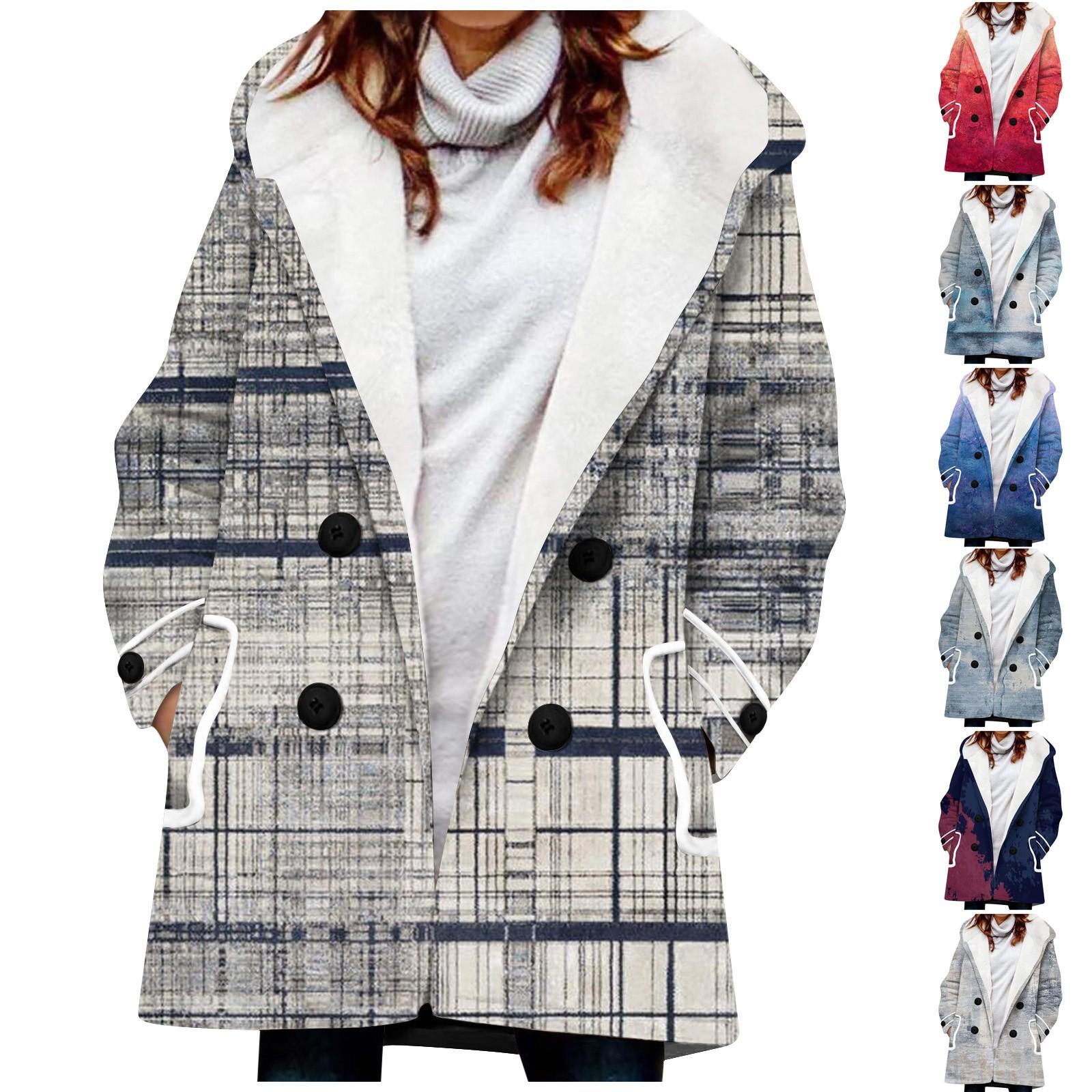 Женское зимнее пальто, теплое мохнатое пуховое пальто с капюшоном и принтом на пуговицах, куртка
