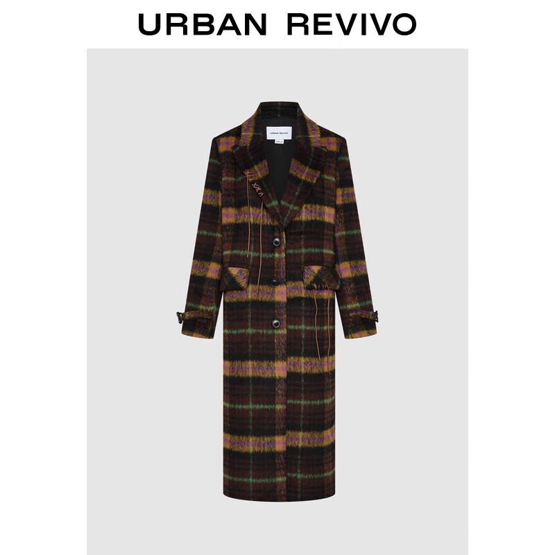 Женское зимнее пальто UR 2024 в стиле ретро, длинное, в клетку