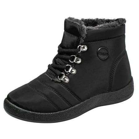 Waterproof Snow Boots For Women Toe Men Boots Shoes Lace Up Plus Sport Keep Couples Warm Boots Snow Round Flat Velvet Women Boots Black 45 Hxroolrp