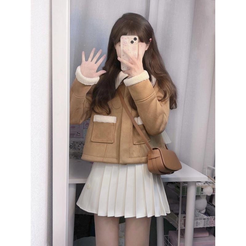 Женское зимнее толстое пальто из овчины цельного кроя с лацканами S (suggested 80~95 jin)