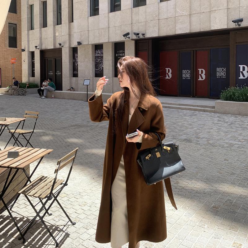 Женское кашемировое пальто средней длины двустороннее с разрезом сзади - Коллекция Осень/Зима 2024 Small