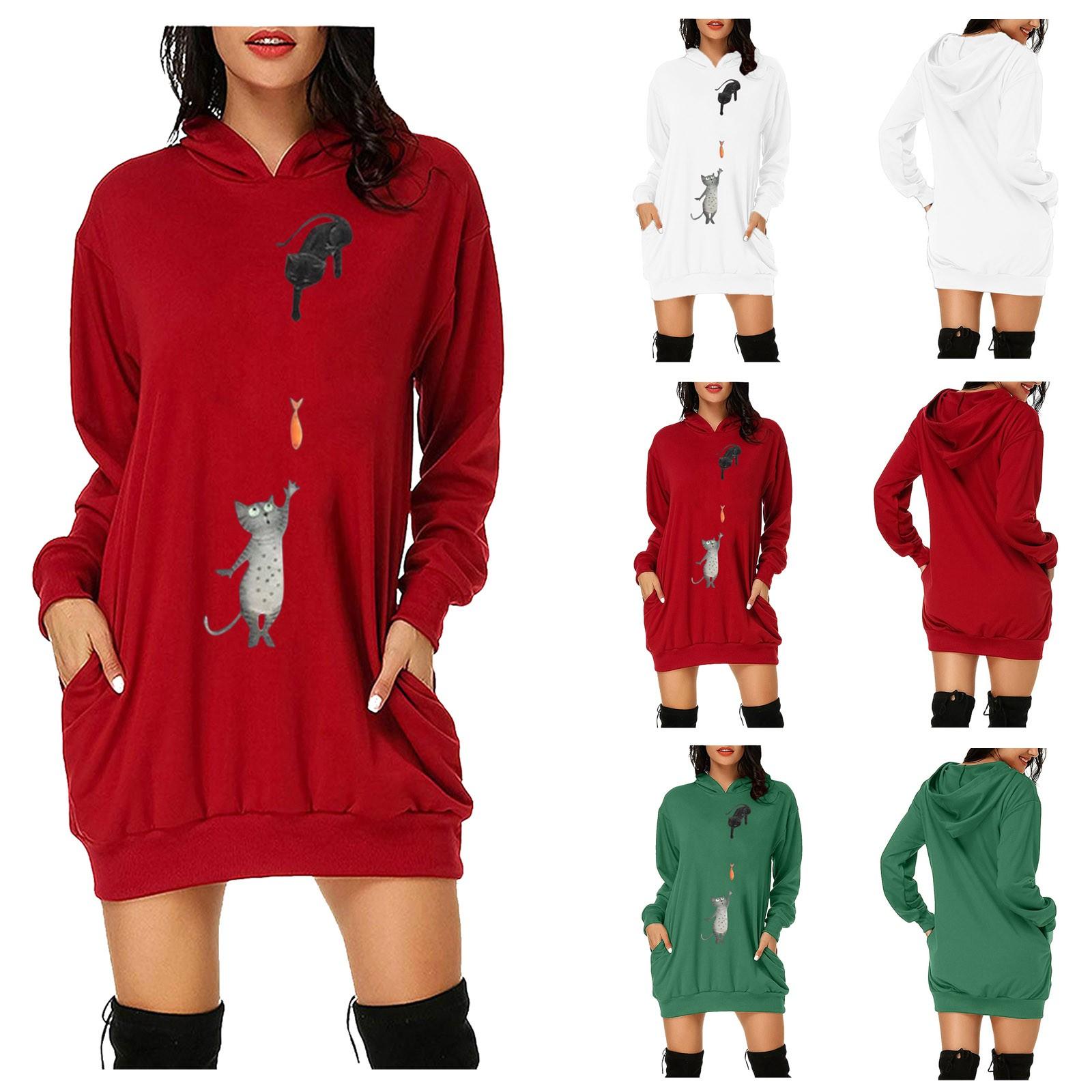 Женское классическое зимнее теплое платье с карманом и сумкой с мультяшным принтом