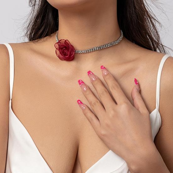 Женское колье со стразами, блестящая расширенная регулируемая элегантная подарочная ретро-цветок розы ручной работы чёрный