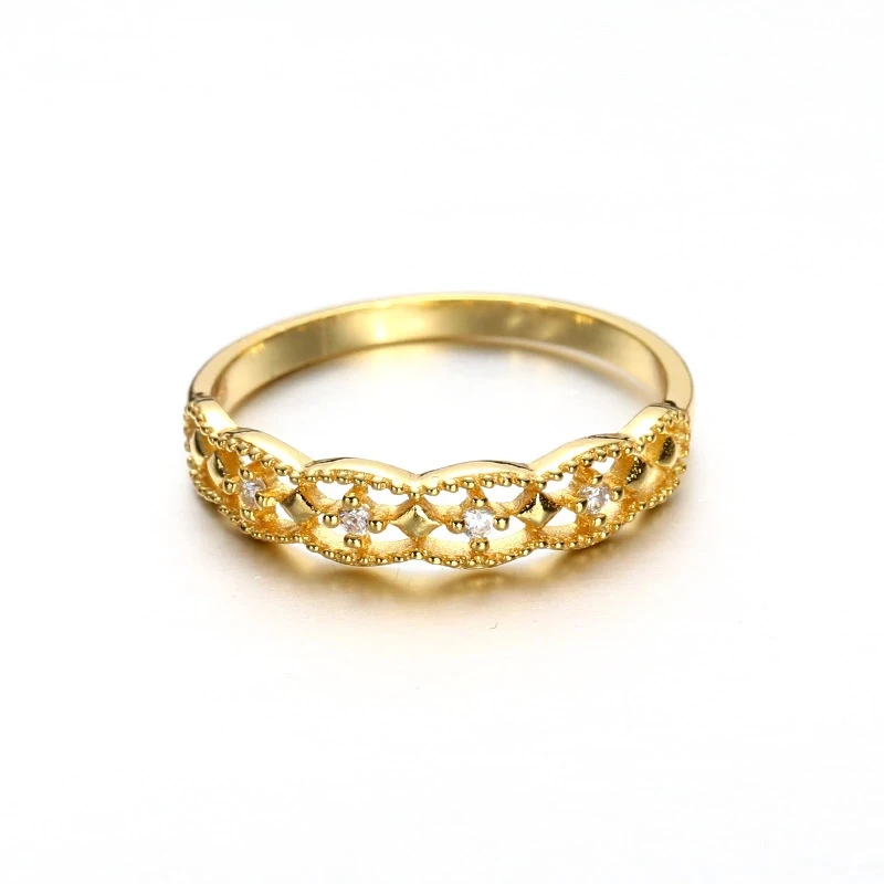 Женское кольцо в стиле барокко, Винтажное кольцо из натурального желтого золота 9 к с полыми цветами и кристаллами, модные ювелирные украшен...