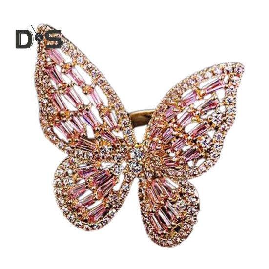 Женское кольцо в форме бабочки со стразами, регулируемое открывающееся кольцо для банкета, вечеринки, свадьбы, ювелирные изделия