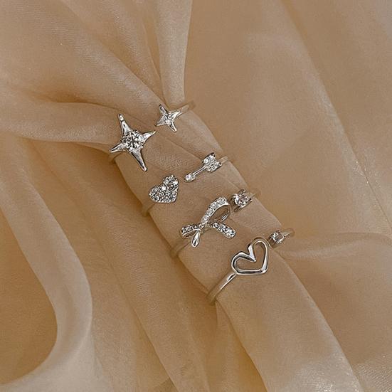 Женское кольцо, милые универсальные аксессуары, открытое кольцо со стразами и серебряным сердечком на палец для женщин A