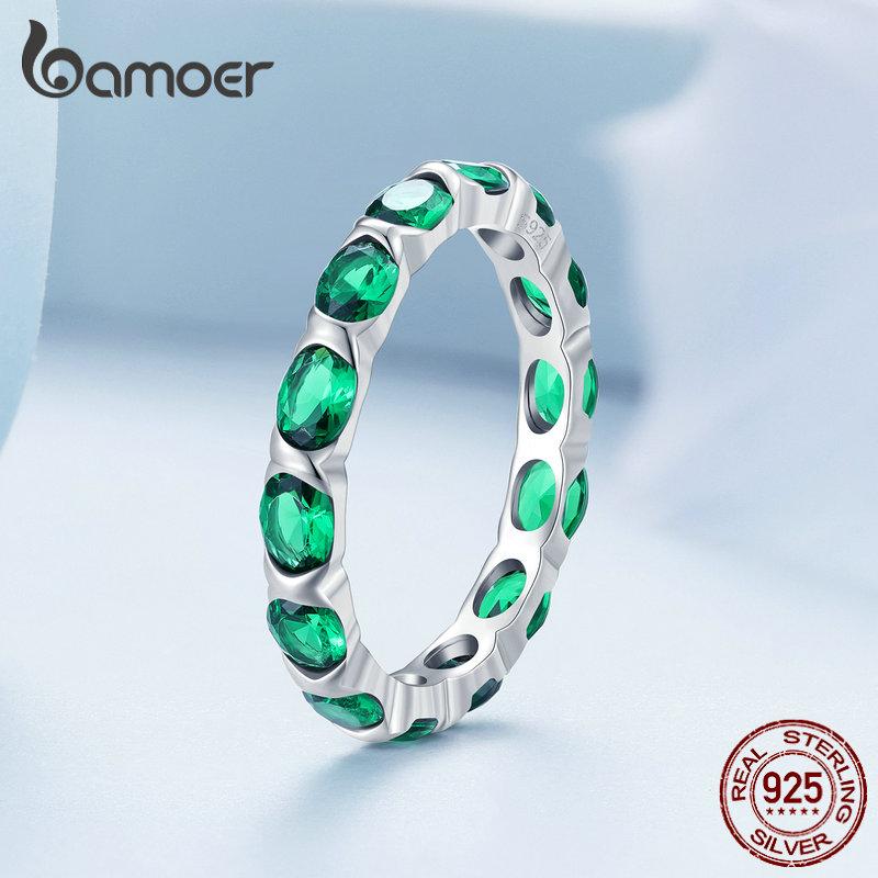Женское кольцо на палец BAMOER из стерлингового серебра 925 пробы с ослепительно-зеленой шпинелью, подарок на день Святого Валентина, ювелирные украшения с платиновым покрытием 8