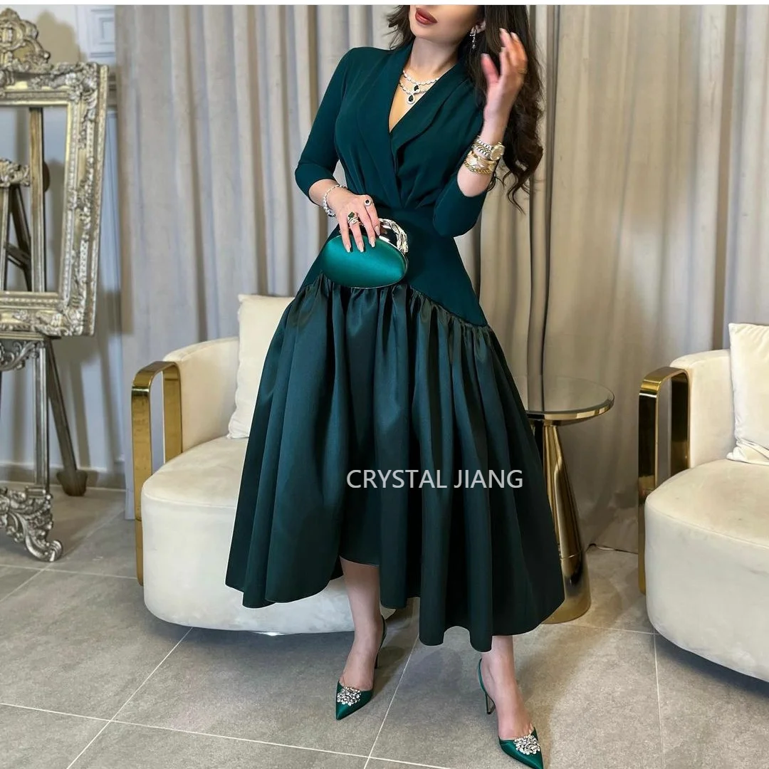 Женское короткое вечернее платье, зеленое Плиссированное ТРАПЕЦИЕВИДНОЕ ПЛАТЬЕ С V-образным вырезом, платье для выпускного вечера, 2023