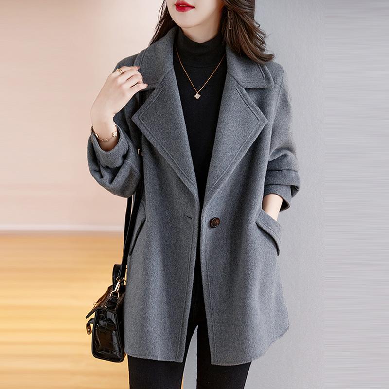 Женское красное шерстяное пальто в корейском стиле, свободного кроя, винтажный модный блейзер с лацканами, зимняя куртка XXL серый