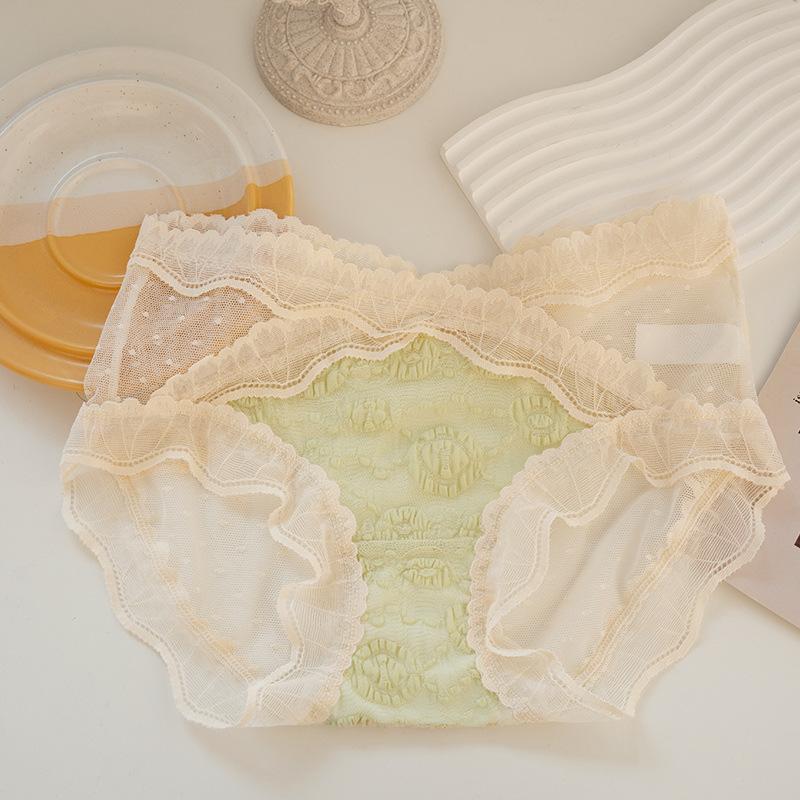 Женское кружевное бесследное сексуальное нижнее белье большого размера, дышащие треугольные брюки в японском стиле для девочек L зелёный