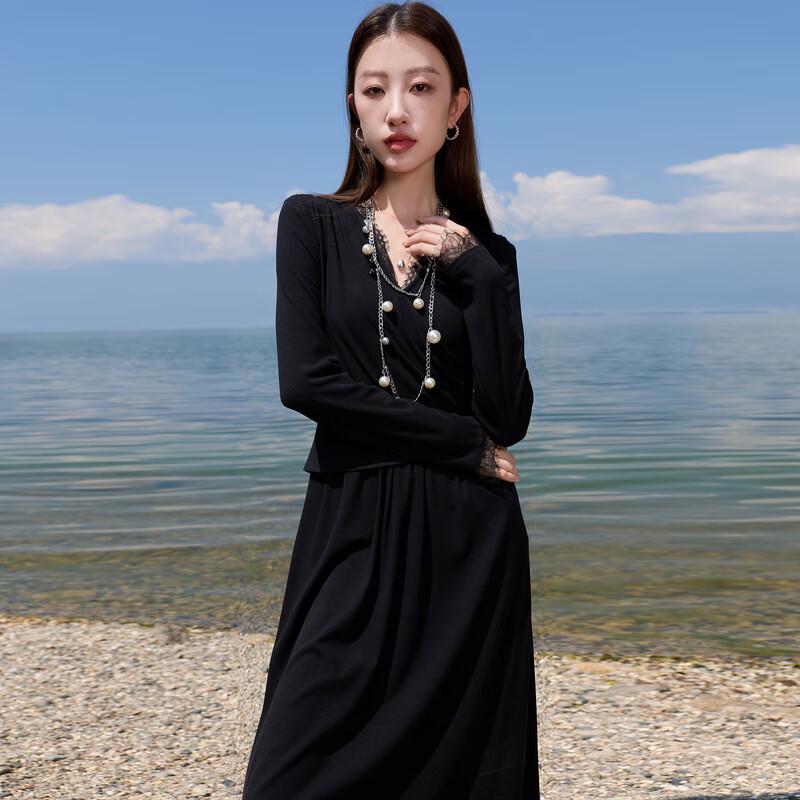 Женское кружевное маленькое черное платье большого размера с V-образным вырезом L 165/92B