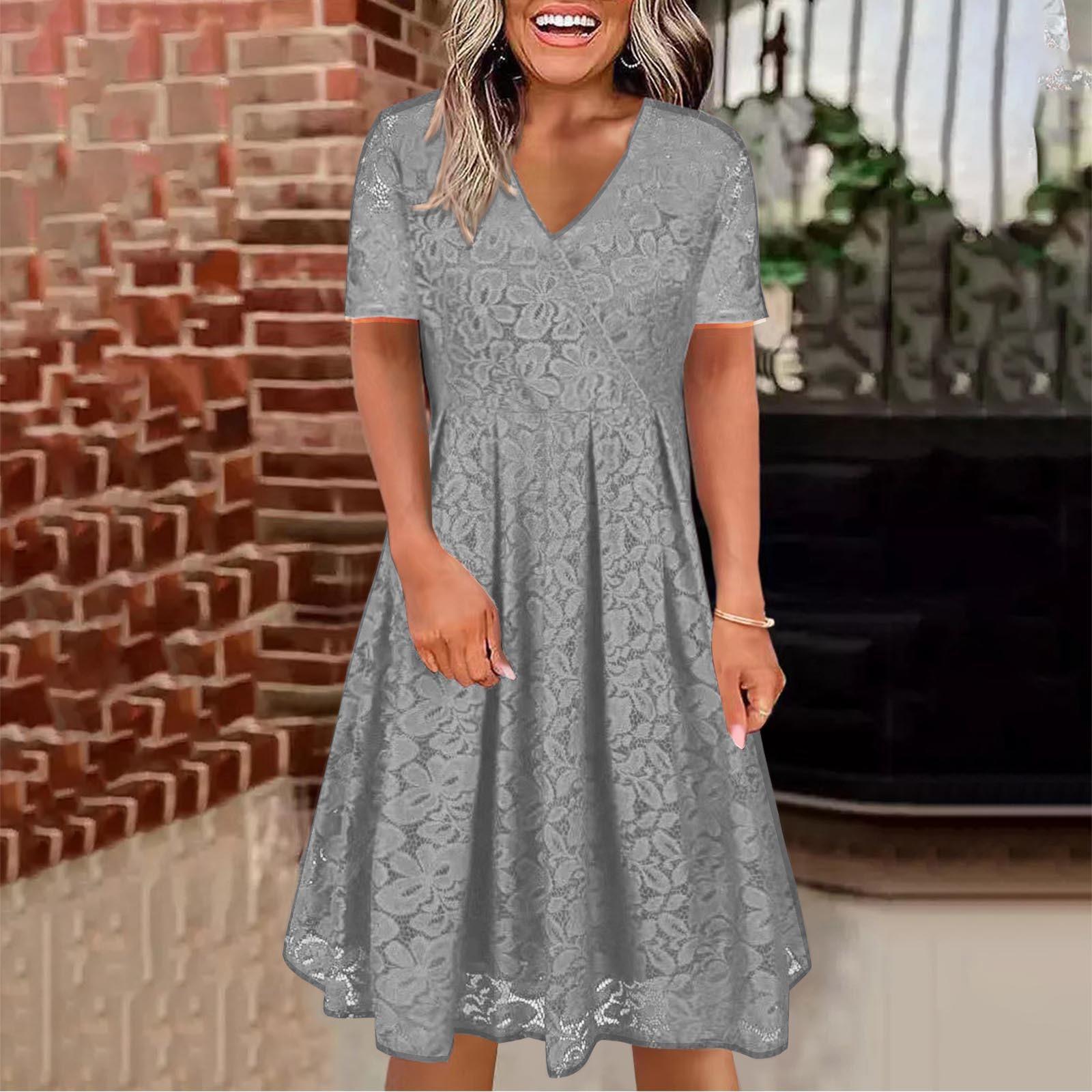 Женское кружевное платье, однотонное, с коротким рукавом, с v-образным вырезом и поясом, большое распашное платье на молнии XL серый