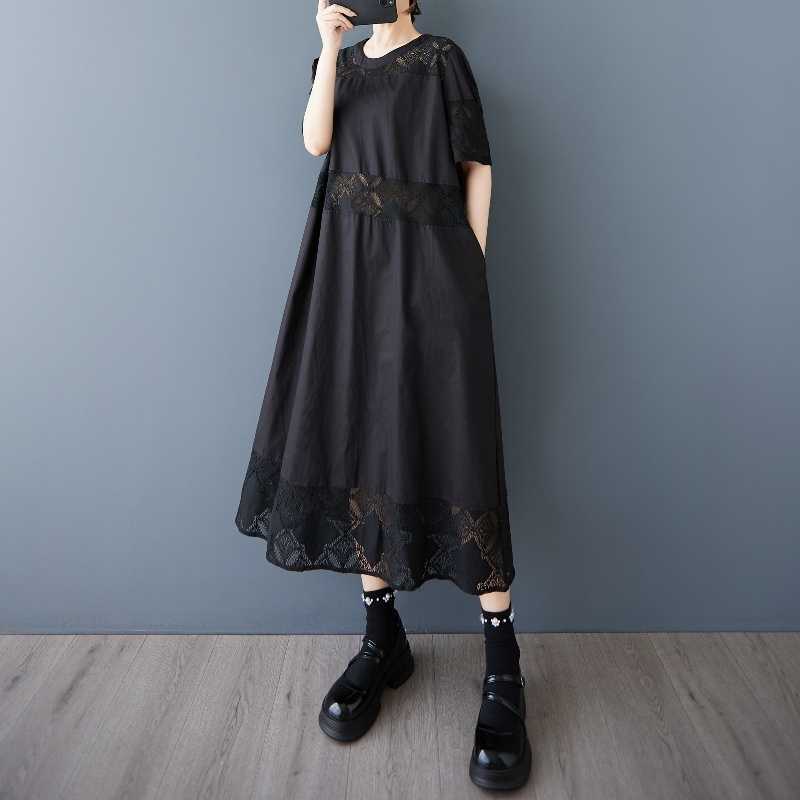 Женское кружевное платье пэчворк с вырезами, модная свободная рубашка, длинная юбка One size чёрный