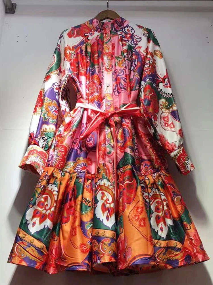 Женское летнее атласное платье с объемным принтом, плиссированное платье в стиле ретро, новинка, женская одежда, вечерние ная вечерняя юбка ...
