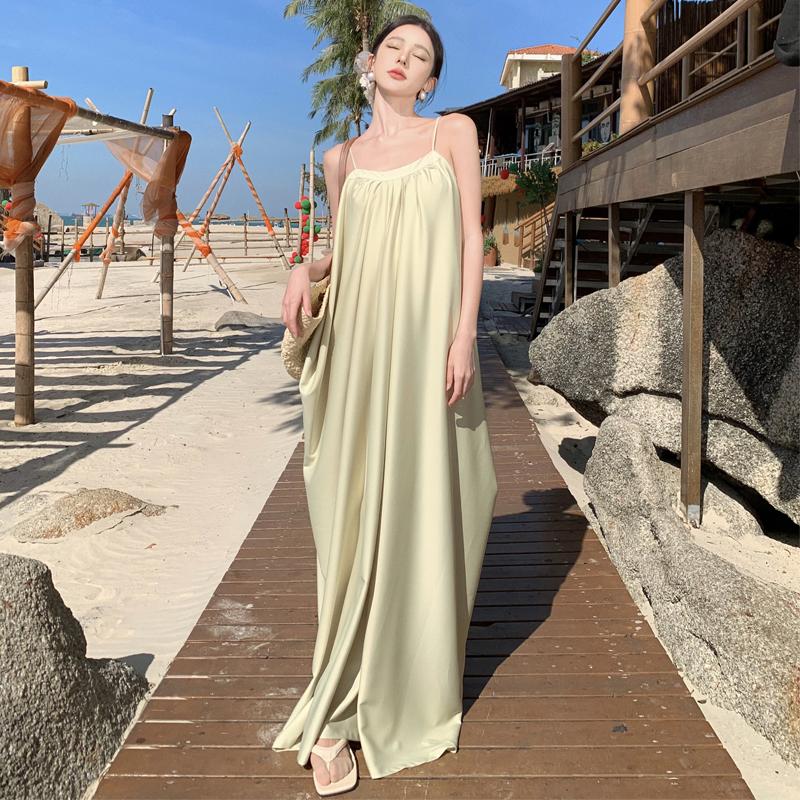 Женское летнее длинное платье с открытой спиной и бретельками, пляжные платья миди без рукавов, сарафан для отпуска