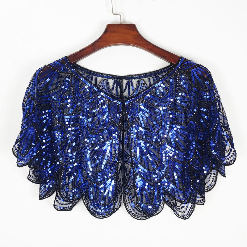 Женское летнее кружевное болеро с пайетками и бисером, короткое, вечернее платье чёрный/синий
