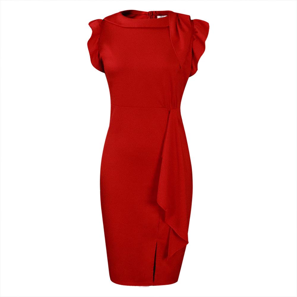Женское летнее модное однотонное платье большого размера с рюшами, женское элегантное цельное платье с разрезом S красный