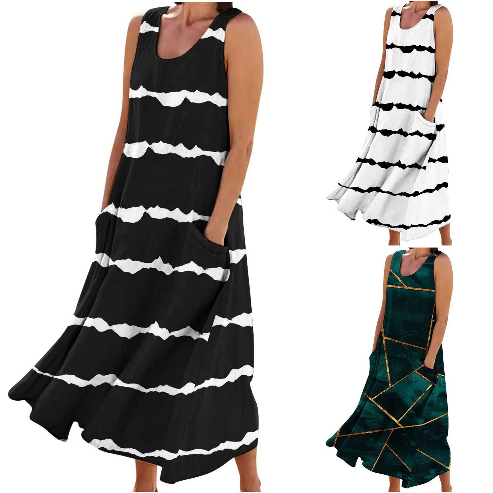 Женское летнее модное повседневное платье без рукавов с круглым вырезом и карманом с принтом L армия зеленый