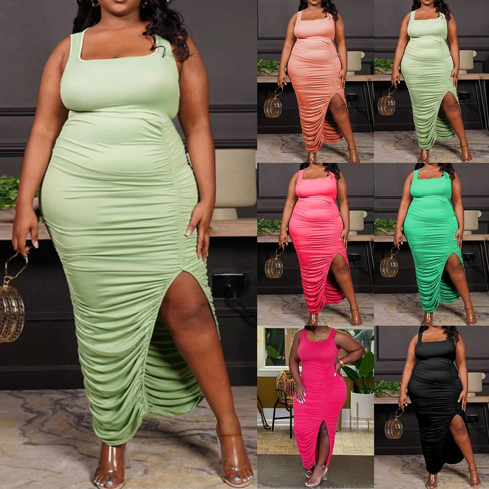 Женское летнее однотонное платье без рукавов больших размеров, узкие праздничные сарафаны для пляжного клуба