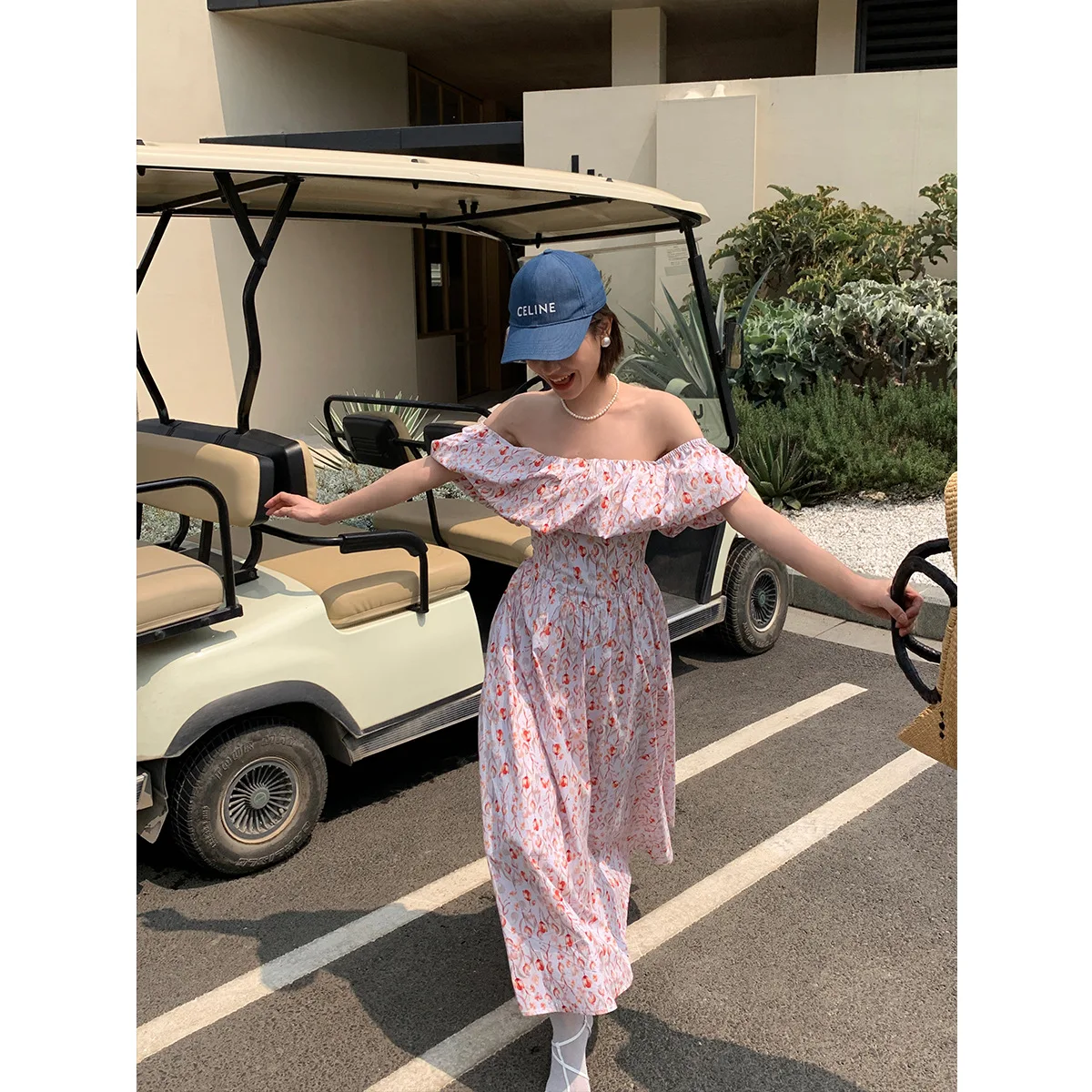 Женское летнее платье в стиле бохо, элегантное однотонное платье во французском стиле с принтом, привлекательное нежное пляжное платье с цветочным принтом, модель 2023 года