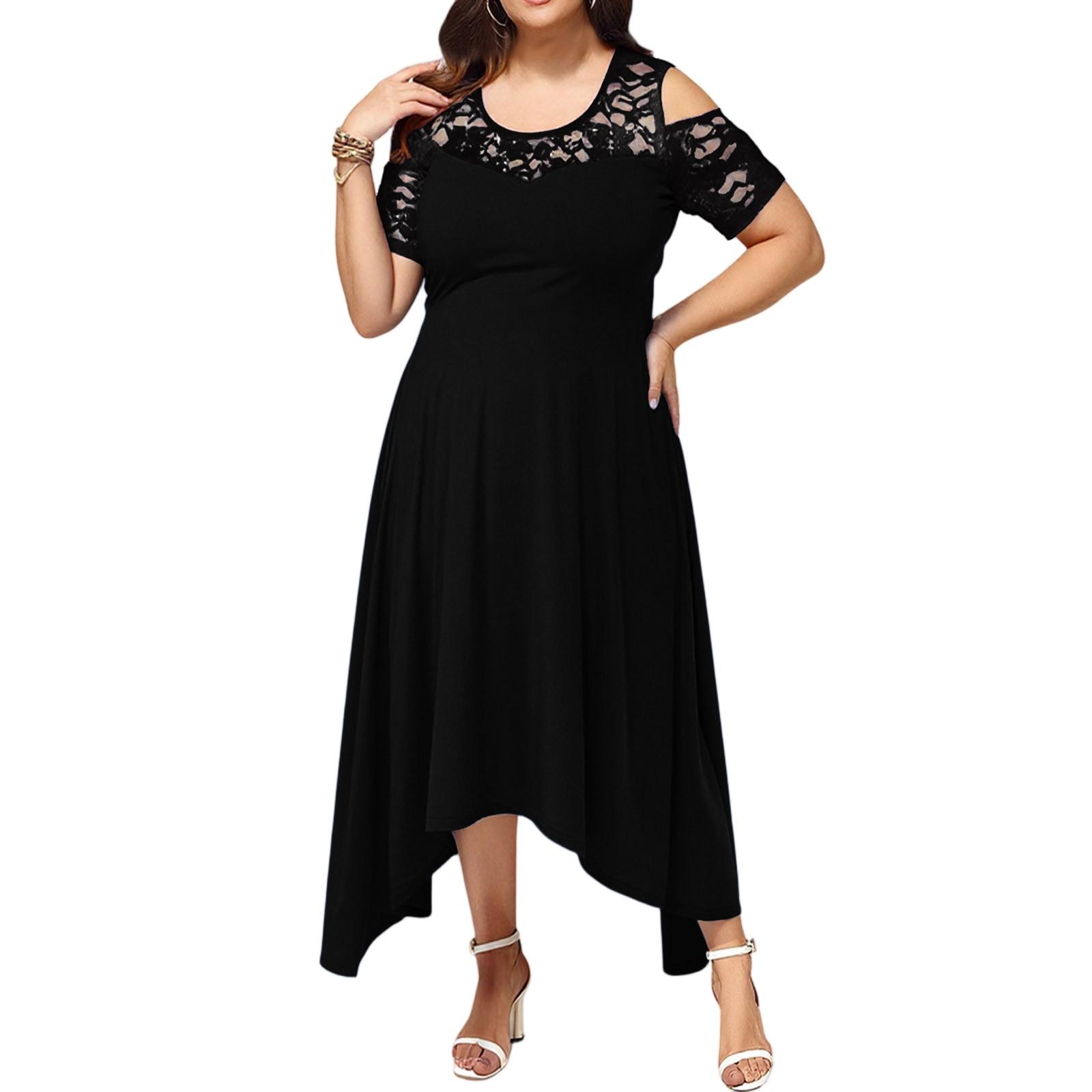 Женское летнее платье с открытыми плечами, кружевной отделкой, элегантное, оверсайз, однотонное XXL