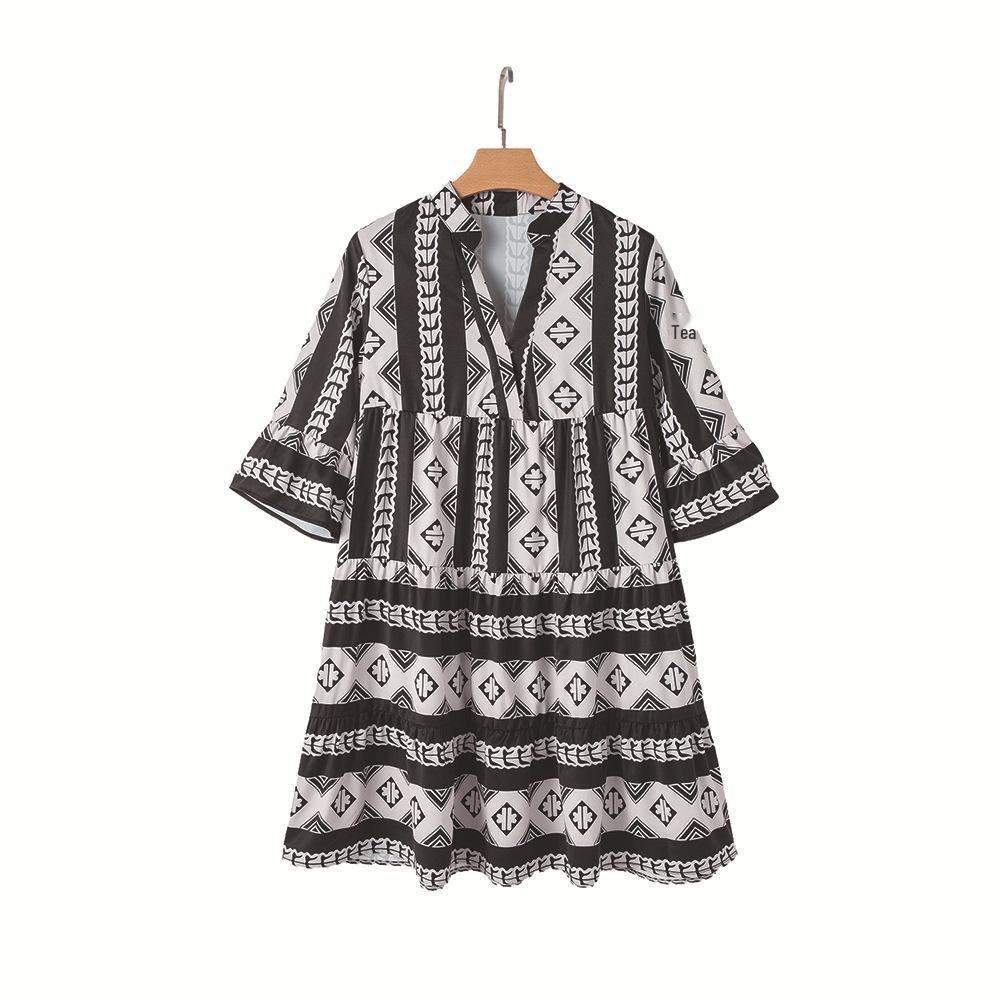 Женское летнее платье с V-образным вырезом, цветными блоками и многоярусными короткими рукавами XL чёрный